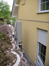 Standortbeispiel für DAIKIN-Wärmepumpen-Aussengeräte - der Baugrössen 004 (4kW Heizleistung) bis 008 (8kW Heizleistung)